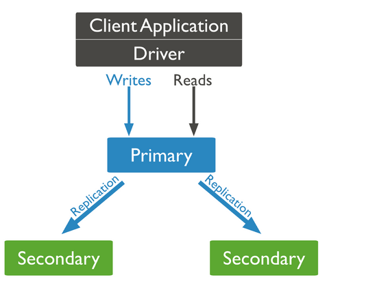 客户端连接到整个 Mongodb 复制集群,主节点机负责整个复制集群的写,从节点可以进行读操作,但默认还是主节点负责整个复制集群的读。主节点发生故障时,自动从从节点中选举出一个新的主节点,确保集群的正常使用,这对于客户端来说是无感知的。
