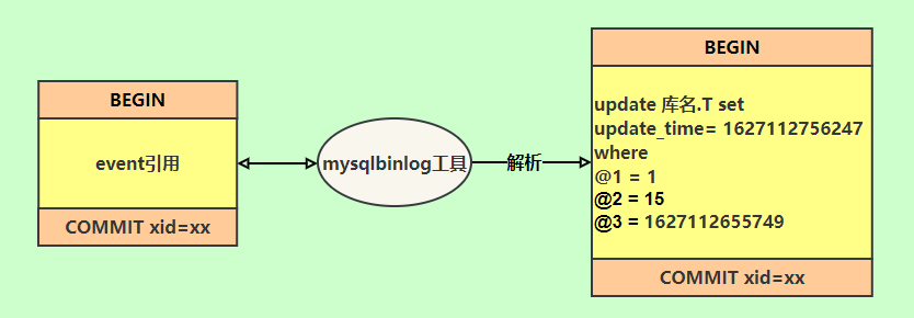 update_time=now()变成了具体的时间update_time=1627112756247,条件后面的@1、@2、@3 都是该行数据第 1 个~3 个字段的原始值(假设这张表只有 3 个字段)。