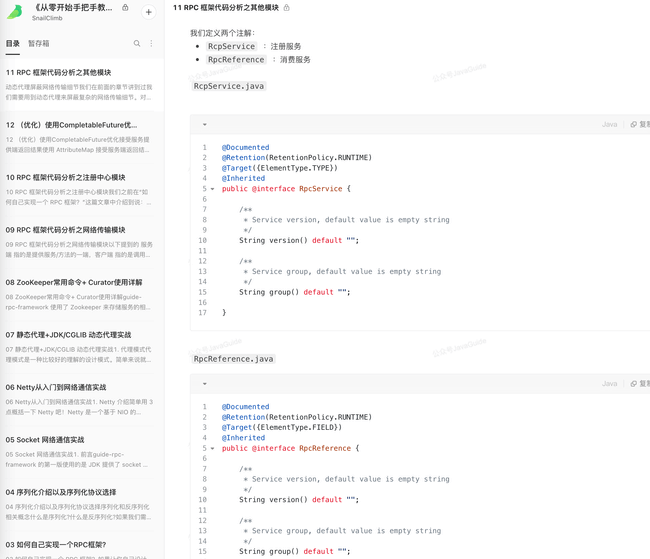 《手写 RPC 框架》 是我的知识星球的一个内部小册,我写了 12 篇文章来讲解如何从零开始基于 Netty+Kyro+Zookeeper 实现一个简易的 RPC 框架。
