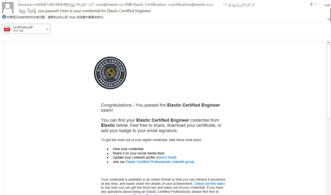 比较建议考 Elastic Certified Engineer,这个是 Elastic Stack 的基础认证,考察安装、配置、管理和维护 Elasticsearch 集群等核心技能。