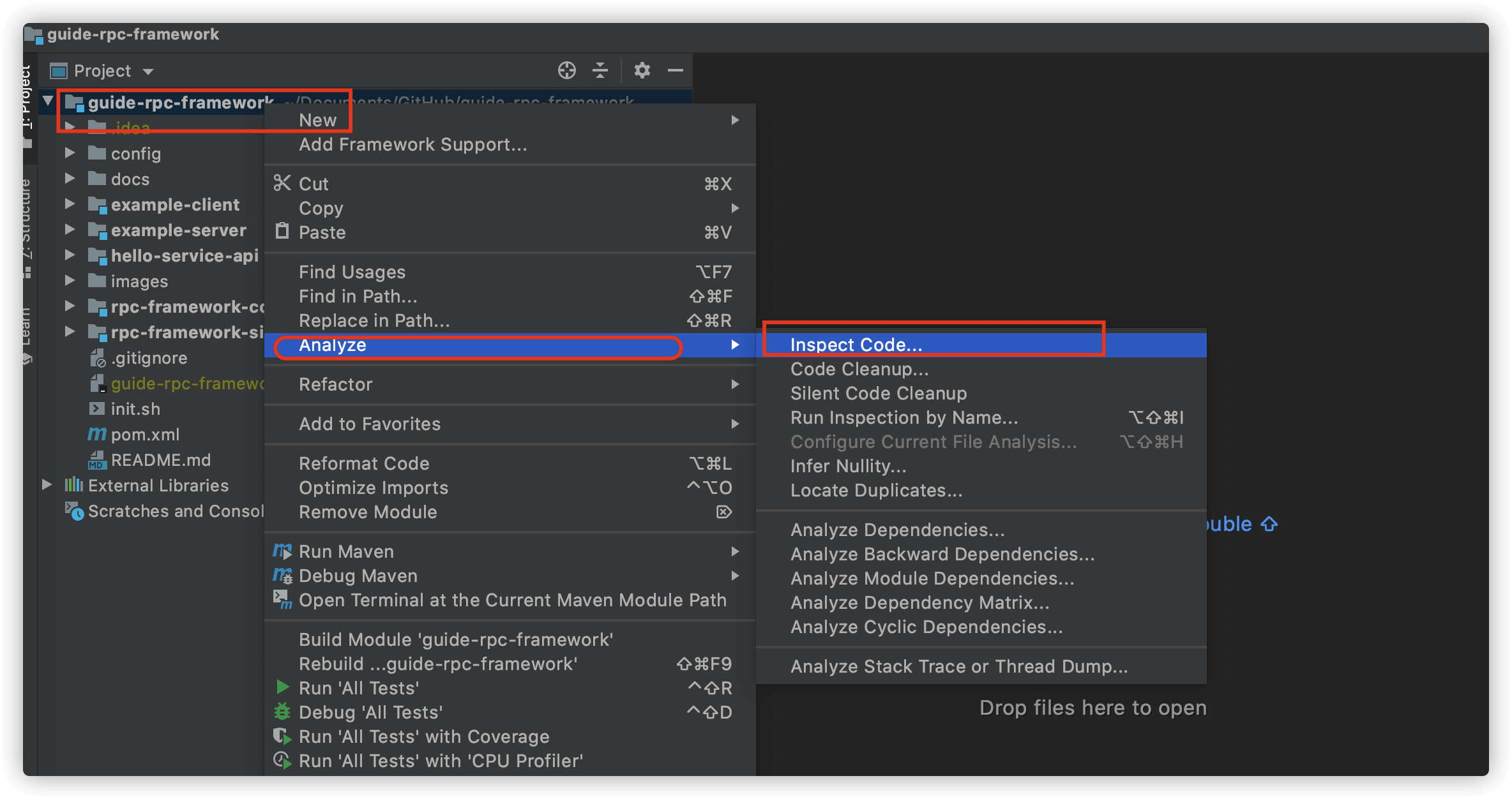 分析你的代码:右键项目-> Analyze->Inspect Code