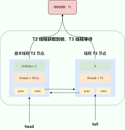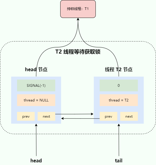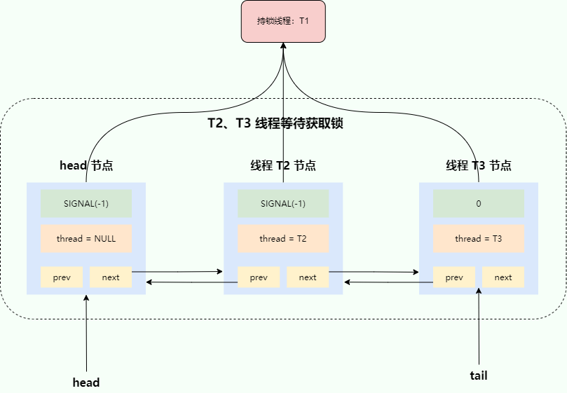 - 单向队列改为双向队列:CLH 锁使用单向队列,节点只知道前驱节点的状态,而当某个节点释放锁时,需要通过队列唤醒后续节点。AQS 将队列改为 双向队列,新增了