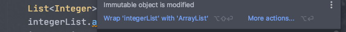 使用 copyOf() 创建的集合为不可变集合,不能进行添加、删除、替换、 排序等操作,不然会报 java.lang.UnsupportedOperationException 异常。 IDEA 也会有相应的提示。