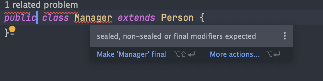另外,任何扩展密封类的类本身都必须声明为 sealed、non-sealed 或 final。