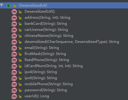 现阶段最新版本的 Hutool 支持的脱敏数据类型如下,基本覆盖了常见的敏感信息。