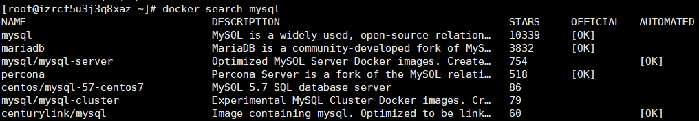 [root@izrcf5u3j3q8xaz ~]# docker images MySQL