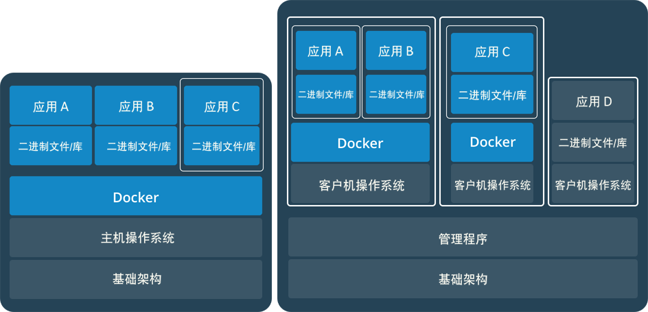 简单来说:容器和虚拟机具有相似的资源隔离和分配优势,但功能有所不同,因为容器虚拟化的是操作系统,而不是硬件,因此容器更容易移植,效率也更高。